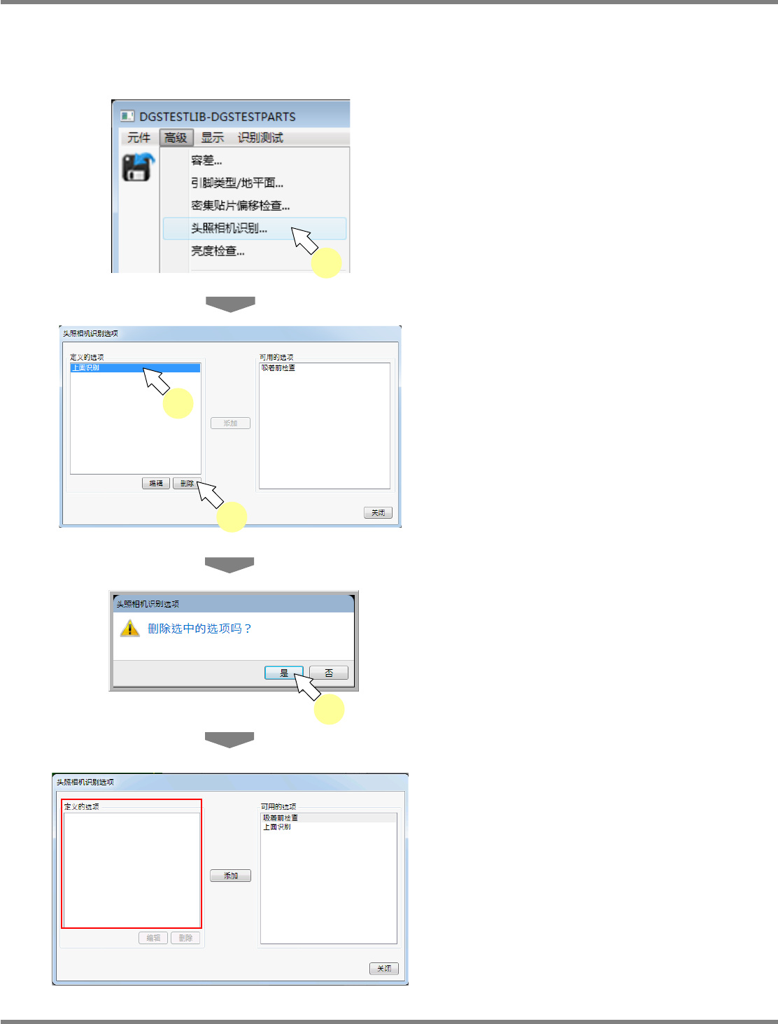 在这项功能下,删除设定在元件上的头照相机识别选项。