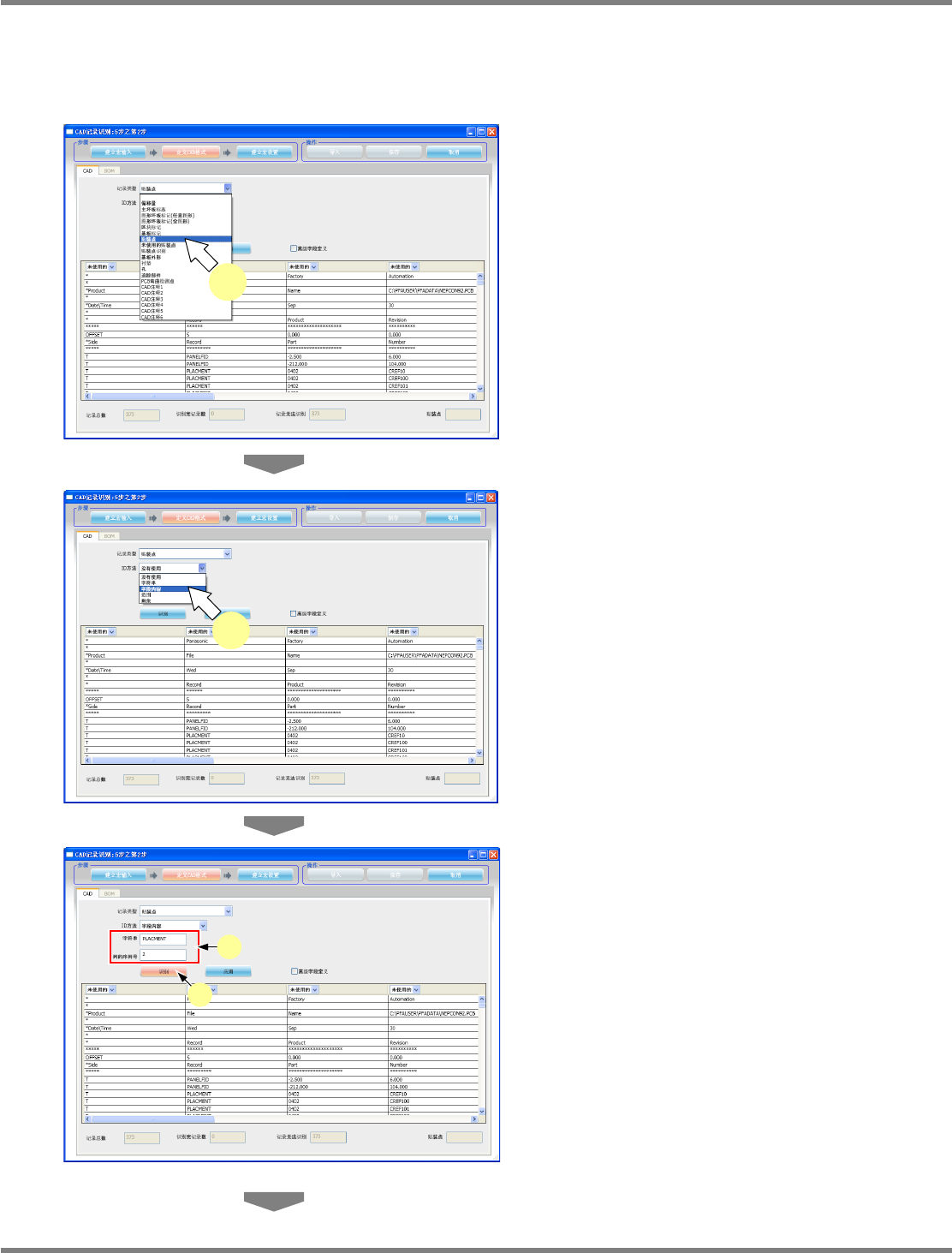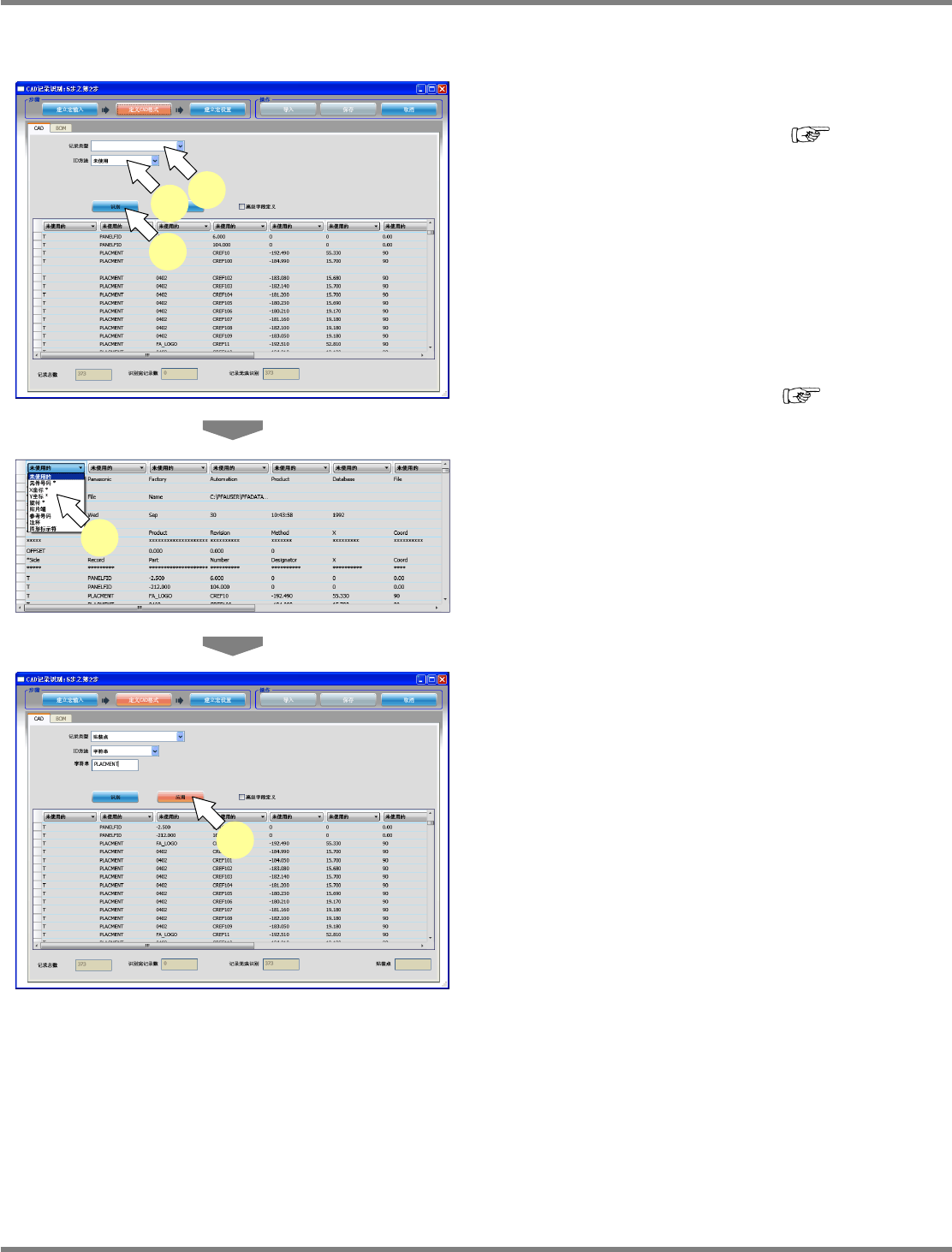 NPM-DGS 程序手册 5.2 CAD 宏的定义 EJS9AC-MB-05P-25 Page 5-45 CAD 宏定义例 对从分隔符指定 CAD 文件中抽出实装点所需的定义例 进行说明。 在分割符指定 CAD 文件中,若有第 2 列中包含 ‘PLACMENT’ 的记录,则将其当作实装点的定 义。 1 选择定义的对象。 选择 ‘ 记录类型 ’ 的 [ 贴装点 ] 。 2 对抽出条件进行定义。 选择 ‘ID 方法 ’ 的 [ …