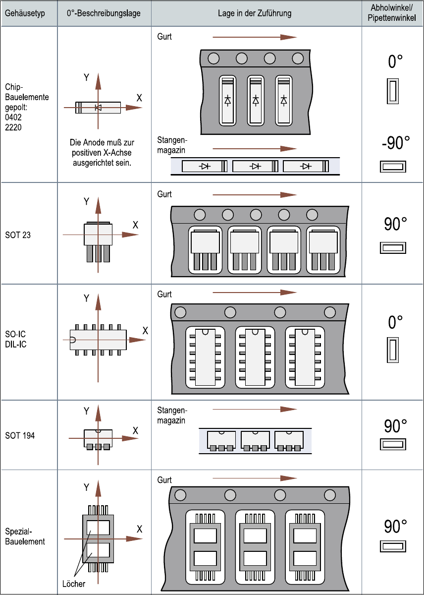 Fig. 3.9 - 2 Position of the component and its pick-up angle