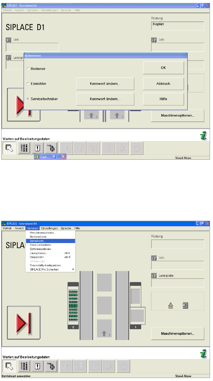 ► From the Optionen (Options) menu, select Bedienebene… (Access level...) (Abbildung 4-23).