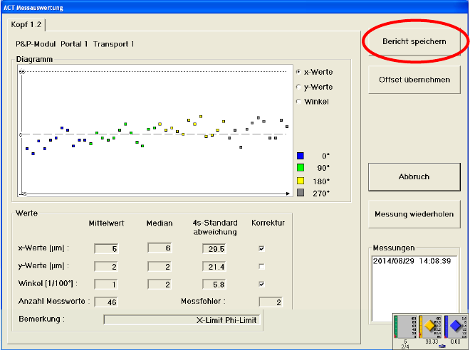 The results of the ACT measurement are displayed on the GUI. Among others, the offset (average)