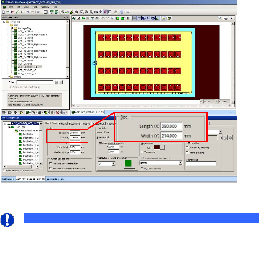verwenden, müssen Sie die Leiterplatte um 50 mm in SIPLACE Pro Desk verlängern!