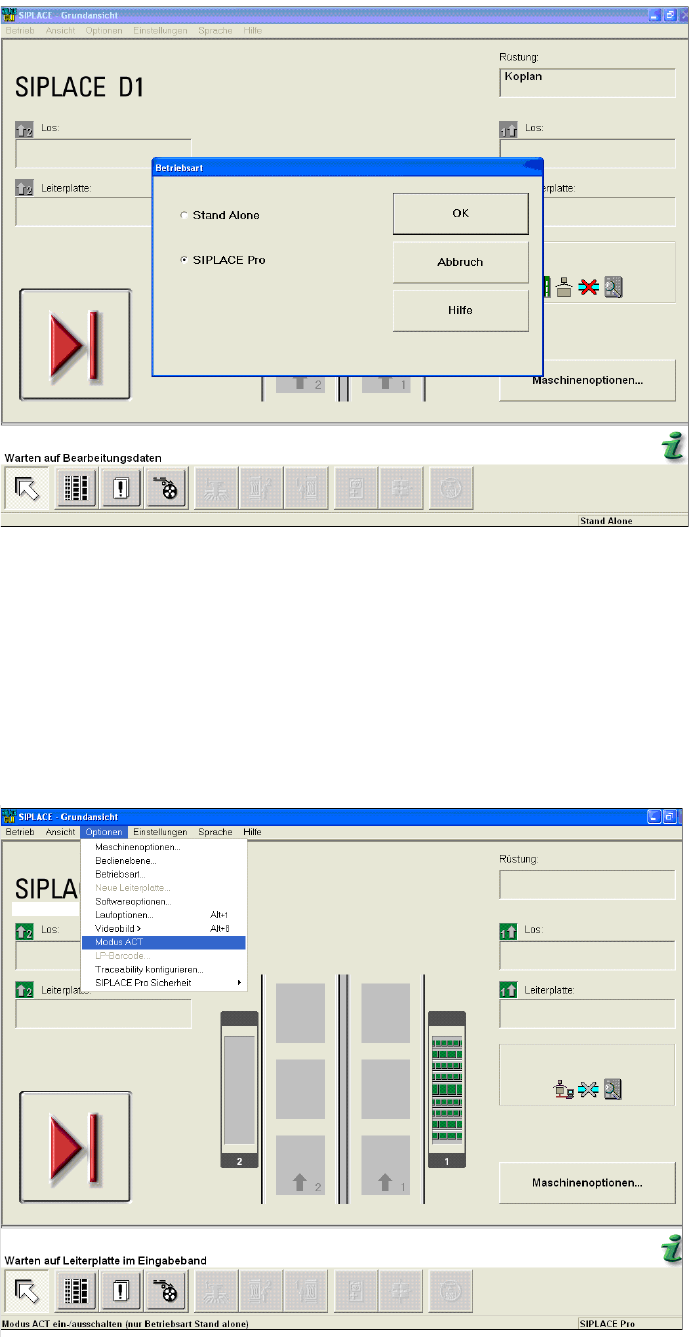 Das Dialogfenster ACT wird geöffnet, die Maschine wechselt automatisch in den Stand Alone-