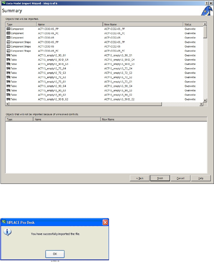 Figure 3-25: Finished import of XML files for tables in SIPLACE Pro