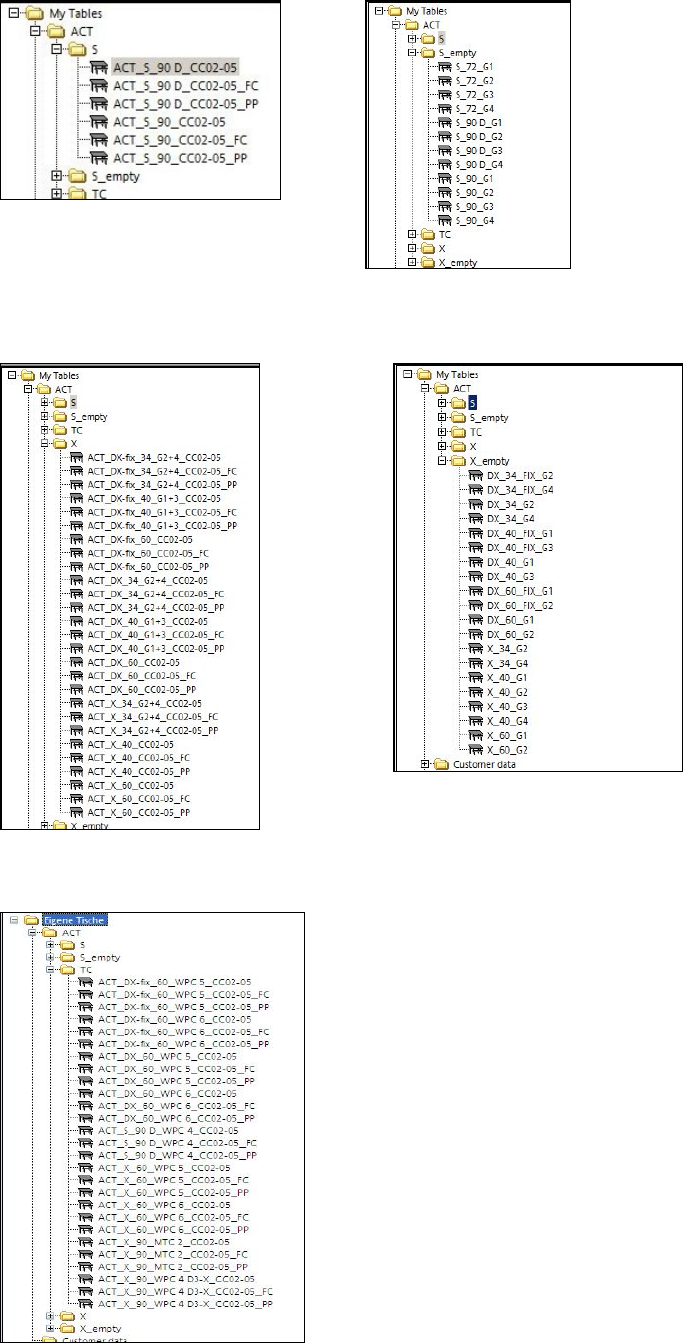 Available tables (setups) for WPC/MTC: