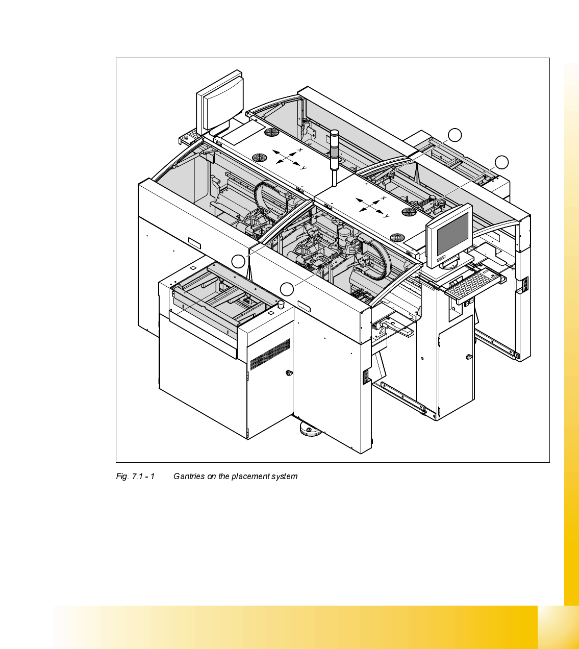 The placement system is equipped with four gantries. These enable the four collect&place heads