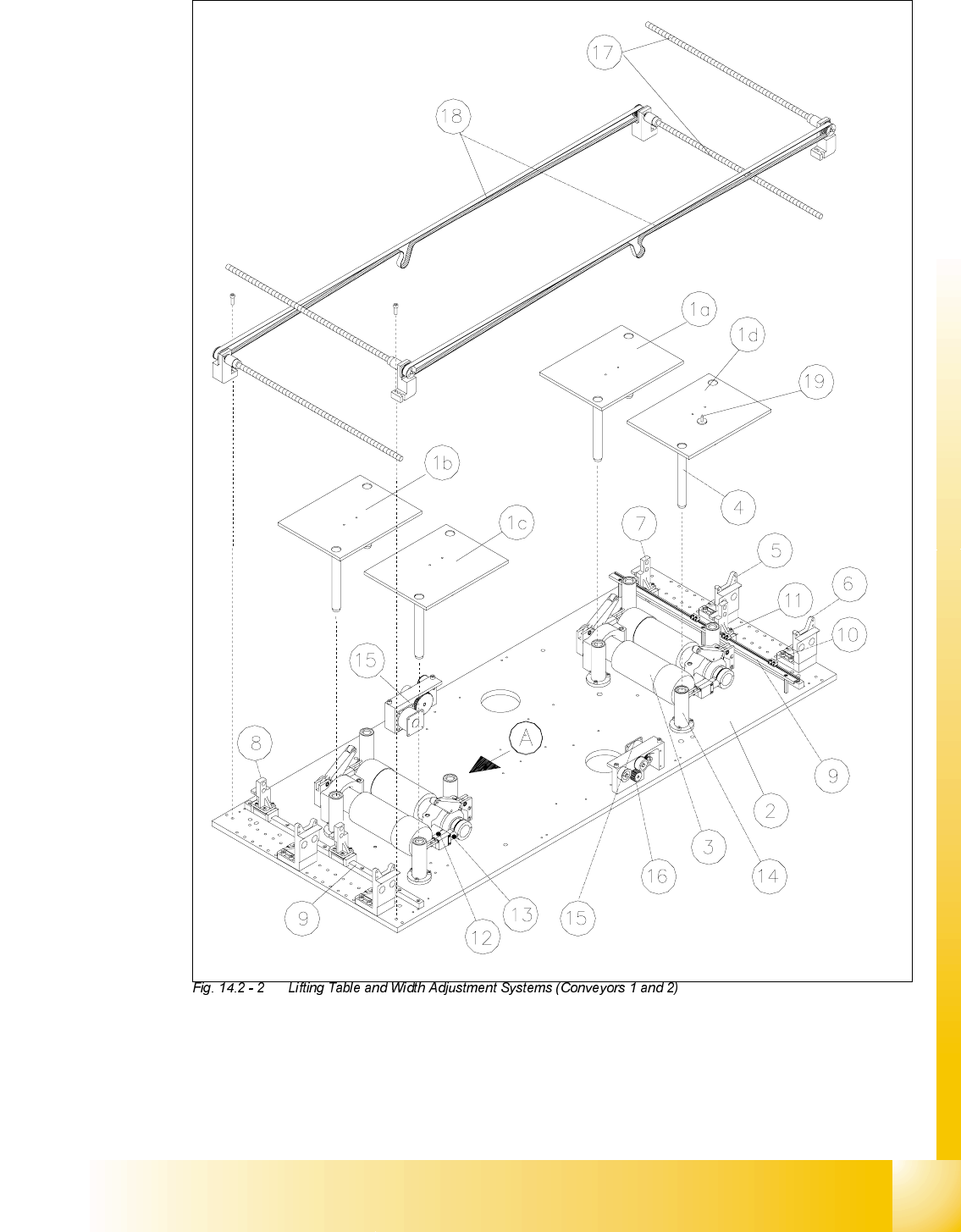 9 Mounting plate for PCB handling unit 10 Lifting table plate (2 for each conveyor 1/2)