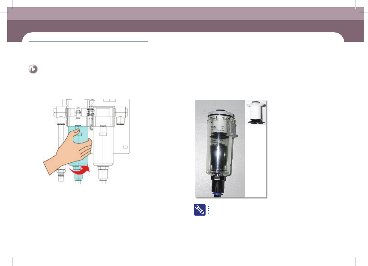 Step 5. 逆 时 针 方 向 转 动 、分 离 容 器 Step 6. 从Air Filter容器拆下Filter后更换