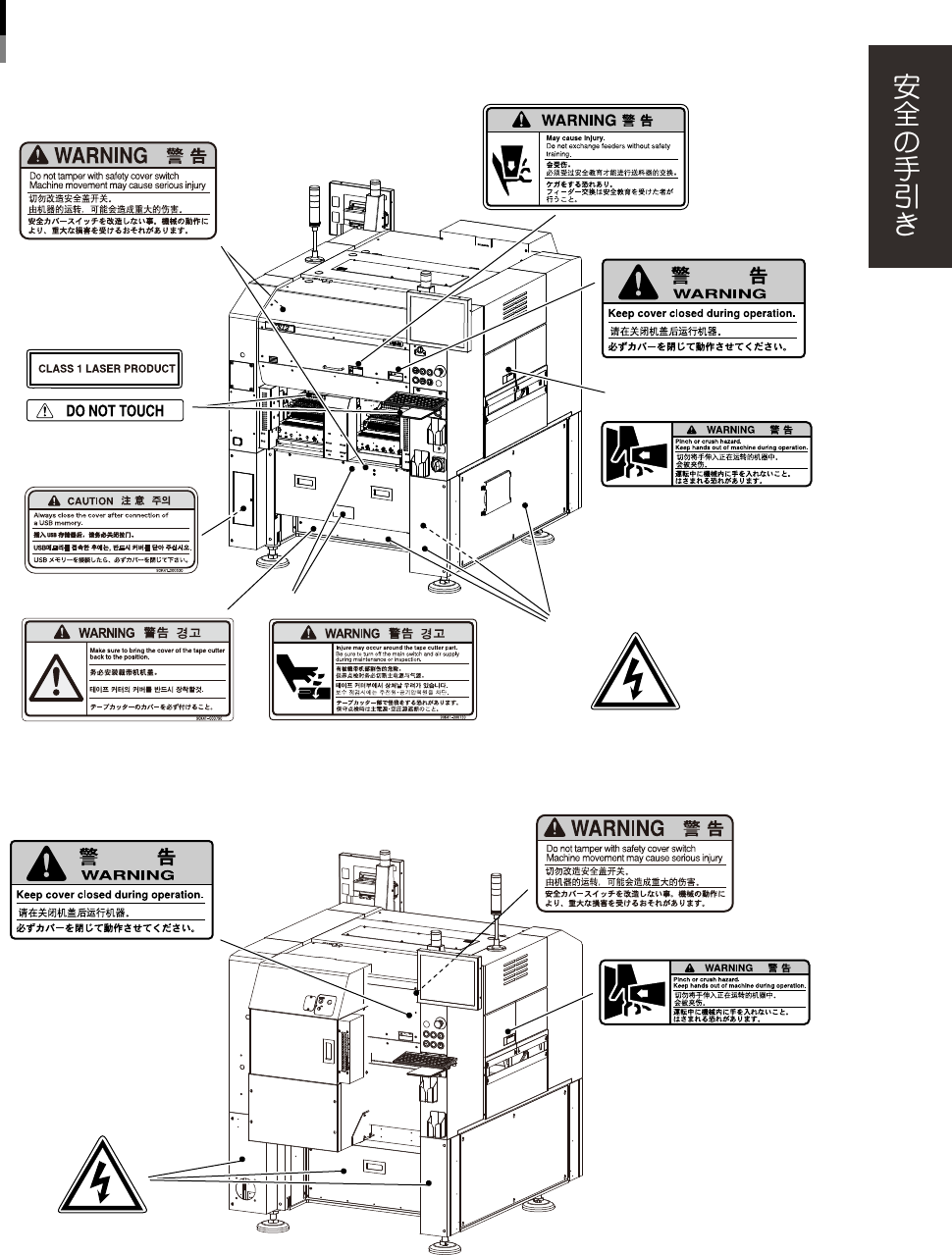 xxiii ■ラベル貼り付け位置(YS12F) 警告表示ラベル YS12F + ATS15 <正面> <背面> ■ 開閉カバー内部 ■ フィーダーセット部 ■ コンベア開口部 (左右) ■ カッター部 ■ カッターダクト部 ■ 開閉カバー ■ 開閉カバー ■ 下パネル部および内部 ■ 下パネル部および内部 ■ パネル内部 ■ 開閉カバー内部 ■ 開閉カバー ■ コンベア開口部 (左右) 91202-L7-00