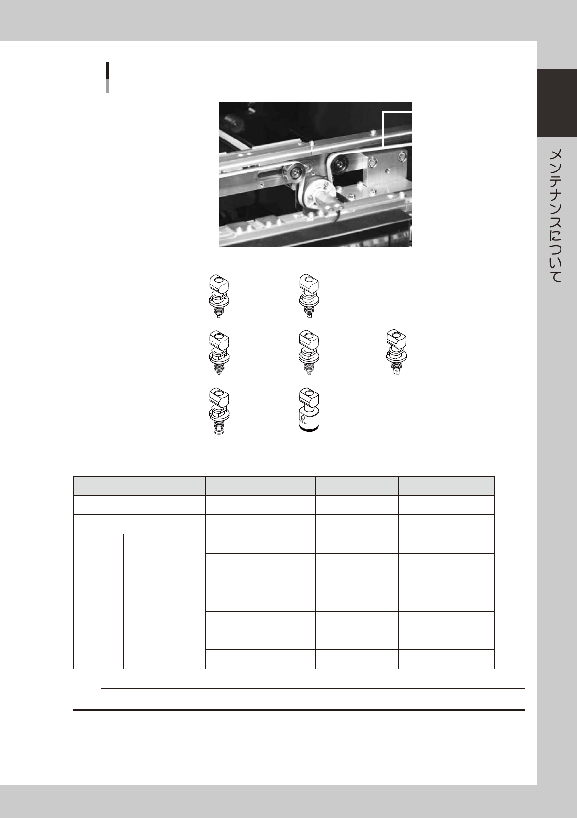本書で示す交換部品とは、機能が失われる ( 故障する ) とマシン停止可能性のある部品ではあるが、交換作業後