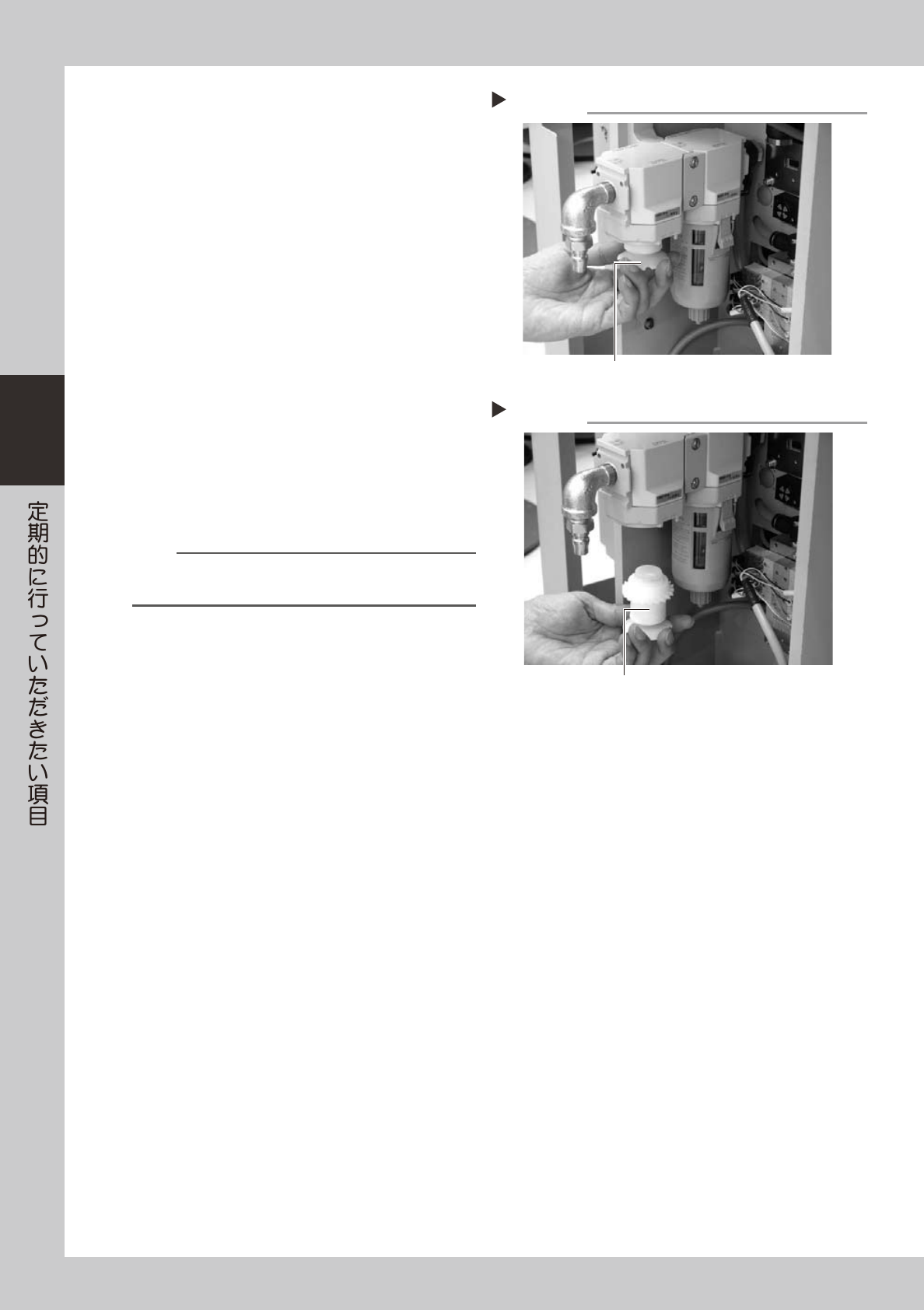 す。カップ内に油や水が溜まると自動的に排出しますので、