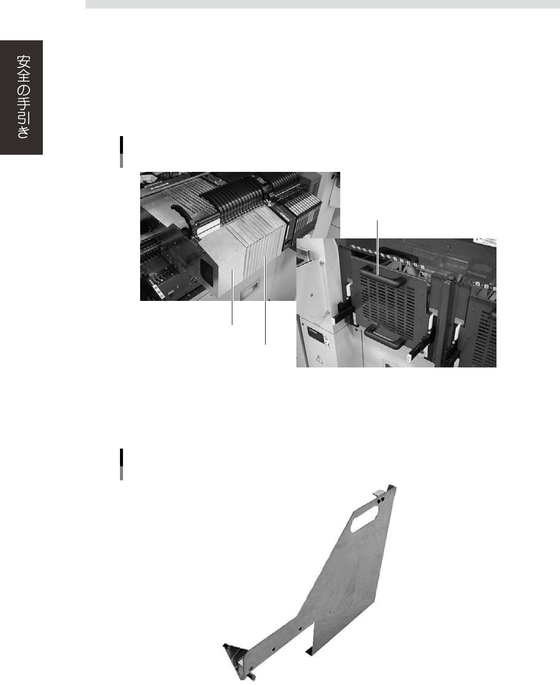 iv 1.8 可動部への手の進入に関して 本機を実際に使用する場合、お客様の用意された設備や使用条件により可動部へ手の侵入が可能になる場合が あります。その場合、開口部や隙間に対する安全対策 ( 危険回避措置 ) として以下のオプションを使用してくだ さい。 ■ダミーフィーダー、ワンストップカバー ( 対象:YS シリーズ ) フィーダー間の隙間を埋める安全対策として使用します。通常の SS フィーダーと同様にフィーダーバンクに取り…