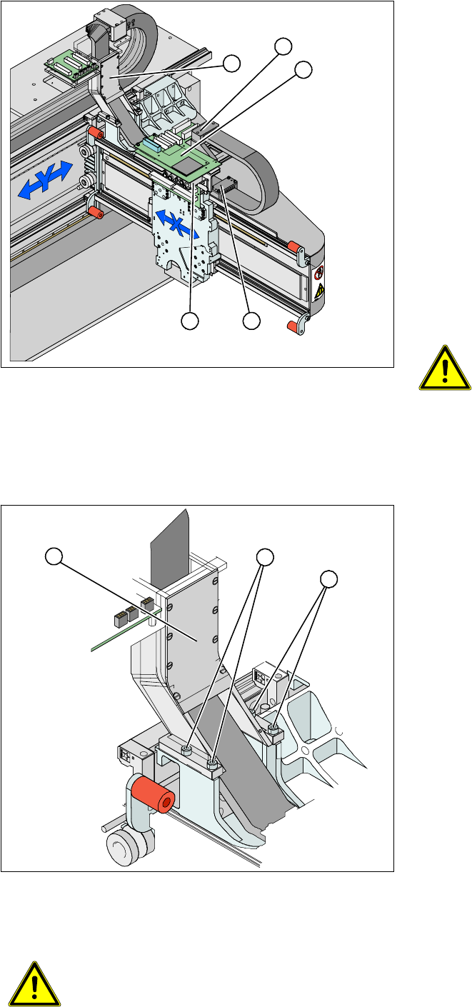 Kabelschlepp tauschen bei X-Serie bis B-078 [03003199-xx] Einbau Serviceanleitung Kabelschlepp tauschen SIPLACE HF und X-Serie 19 1. Kabelschlepp komplett 2. Druckplatten an der Energieführungskette 3. Druckplatten am Po…