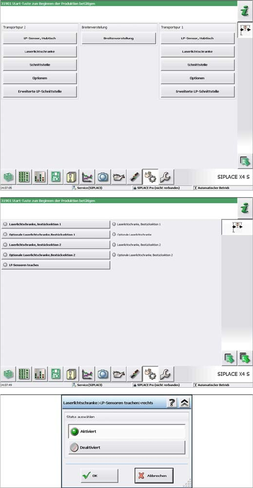 Einbau 3.6.1 LP-Sensoren teachen (SW70x) Abschließende Arbeiten Extension Input/Output Conveyor and Hand Guard Ein-/Ausga beband verlängerung und Eingreifschutz 39 ► Wählen Sie Laserlichtschranke an Transpor tspur 1, akt…