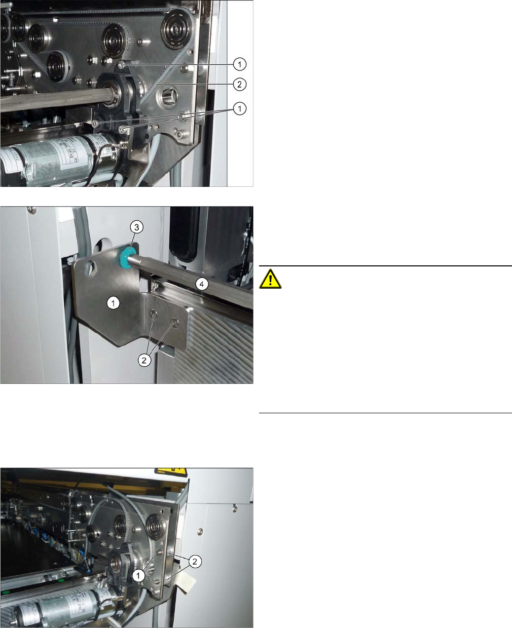 ► Loosen the sensor screw (1) on the belt guidance.