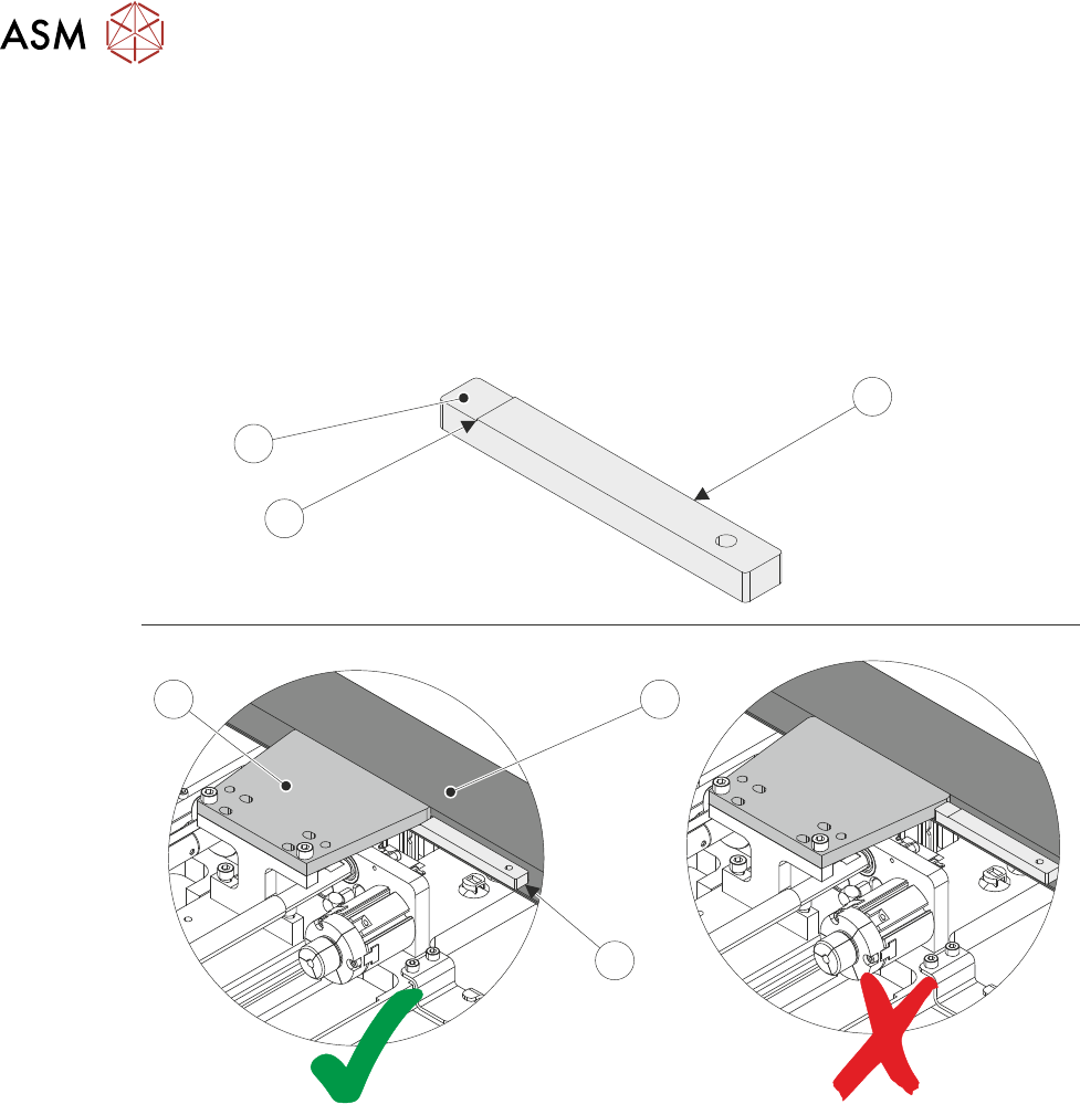 35. Using a 4mm Allen key and two M5 cap head screws (15), install a setting jig plate (13) onto