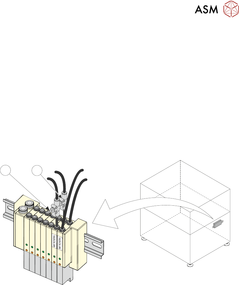 2. Locate 16SOL08 with air flow controllers (USC Up (1) and USC Down (2)) fitted to the output