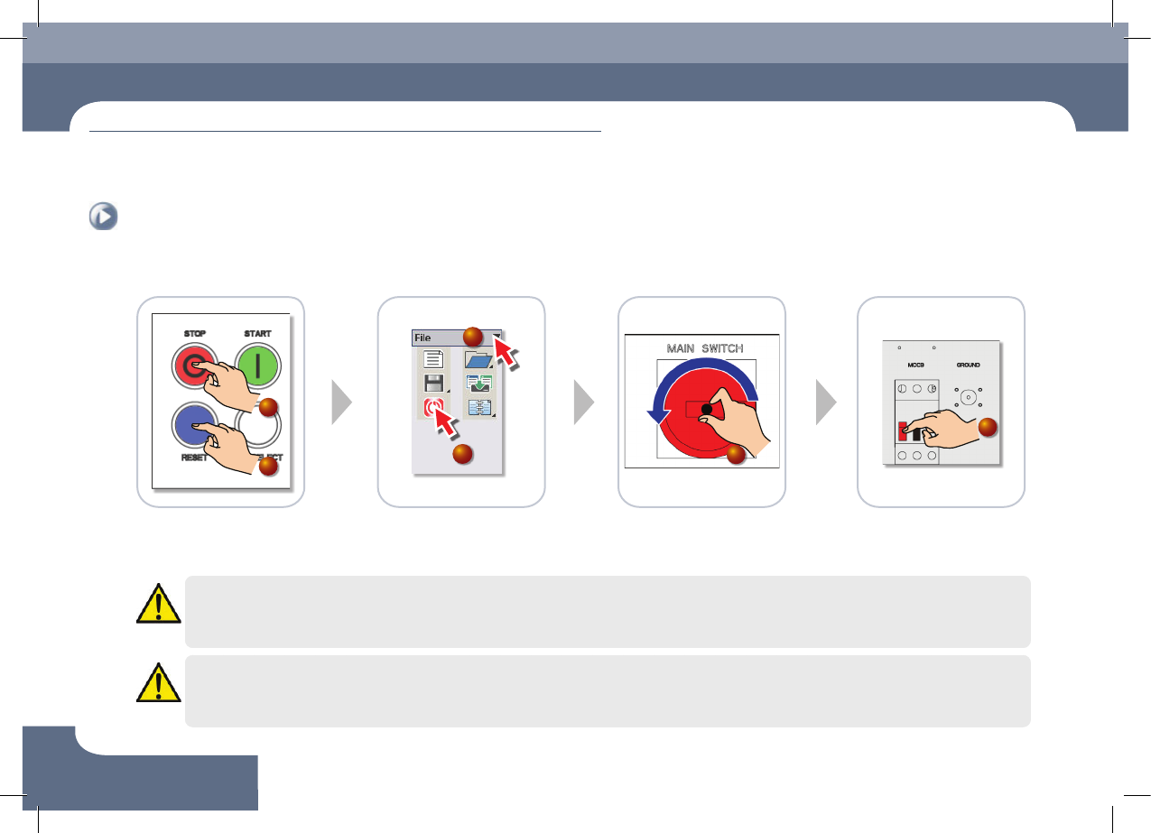 System needs to be shut down after normally ending the MMI, otherwise, the machine might be damaged and injury could occur due to system error caused by