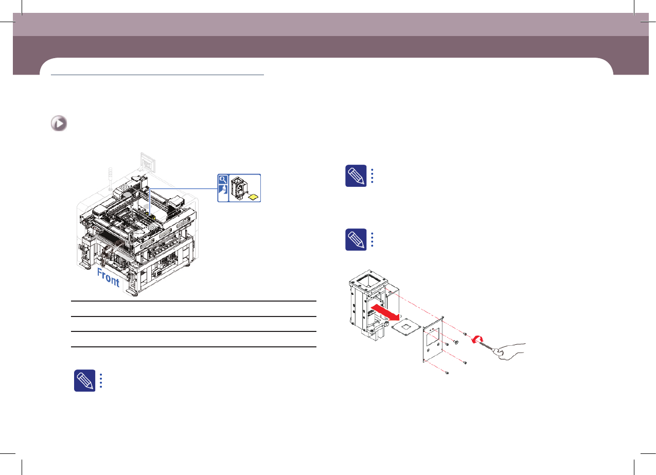 DE CAN S2 M ain ten an ce H and bo ok 3-1 7 chapt er 3 Daily Inspe ction Advanced Chip Shooter Checking and Cleaning and Fix Camera Lens Remove foreign material on the camer a lens to prevent part recognition error . T o…