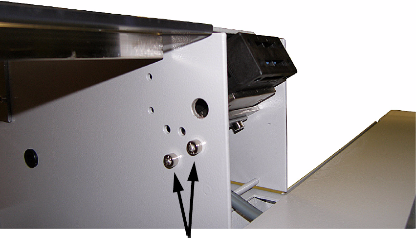 : Entfernen Sie das linke Konsolenblech durch lösen der beiden Schrauben auf der Innenseite.