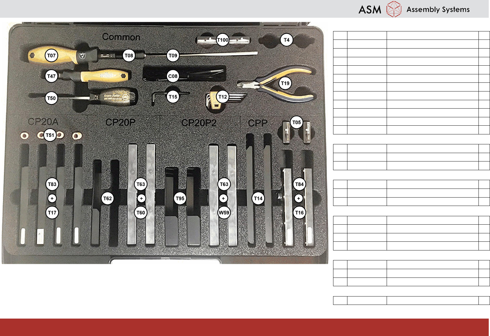 Item no. 00197485 -04 Edition 11 /2018 Checklist: Head Exch ange Kit www. asm-smt .com * From SW 711.1 “ calibration tool SST48/49 (T100) ” replaces “ calibration jig version SST23 (T04) ” for all cameras ** Nozzle type …