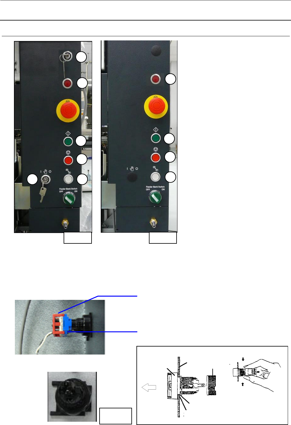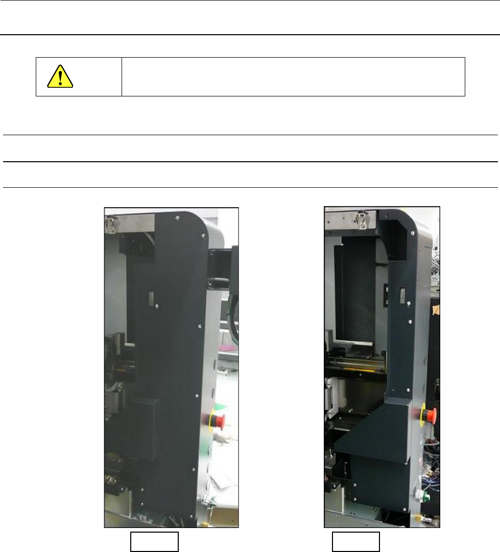 维修调整要领书 11 -1 危险 为防止因意外起动导致事故,请切断电源后,再进行操作 。 11 开关类 11 - 1 按钮开关 的 更换 11 -1- 1 支撑 架的 前上右 / 后上左 外 罩 的 拆卸 1) 前侧开关,请拆去支撑架的前上右外罩;后侧开关,请拆去支撑架的后上左外罩。 前侧 后侧