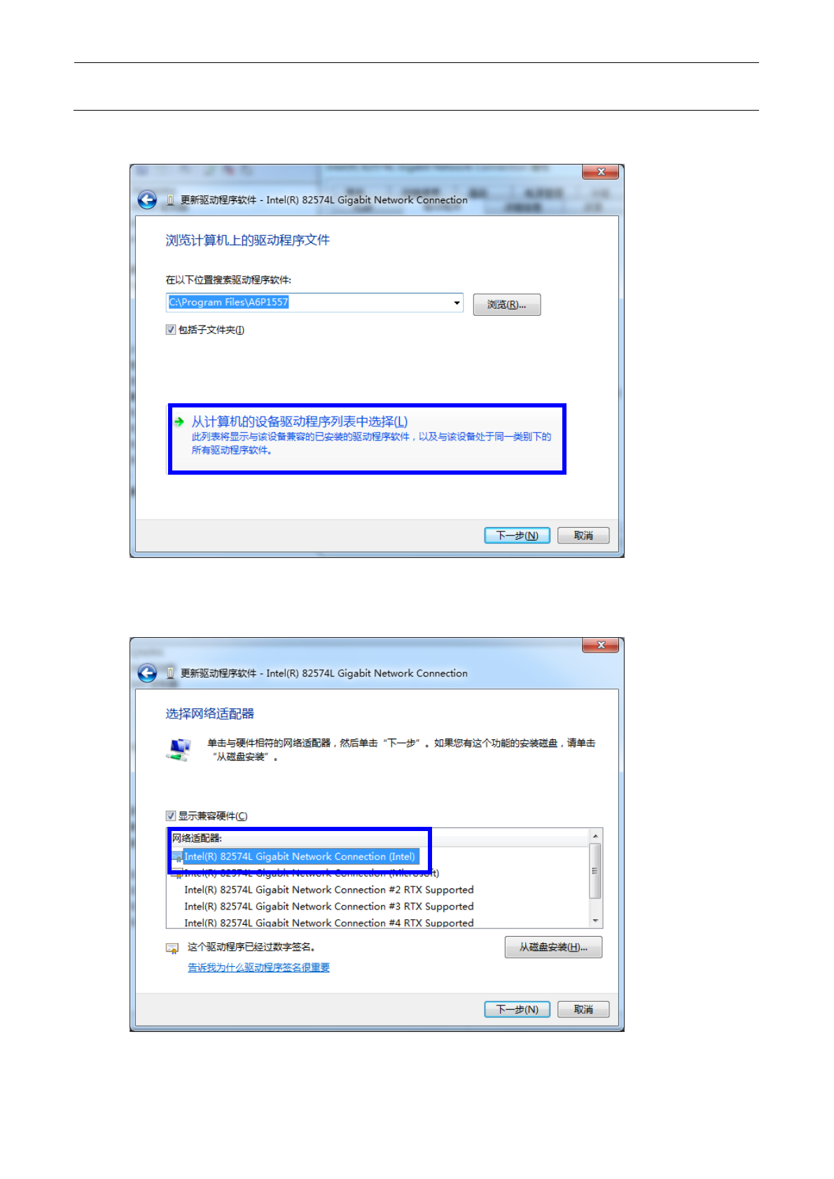 10) 选择“Intel(R) 82574L Gigabit Network Connection (Intel)”。