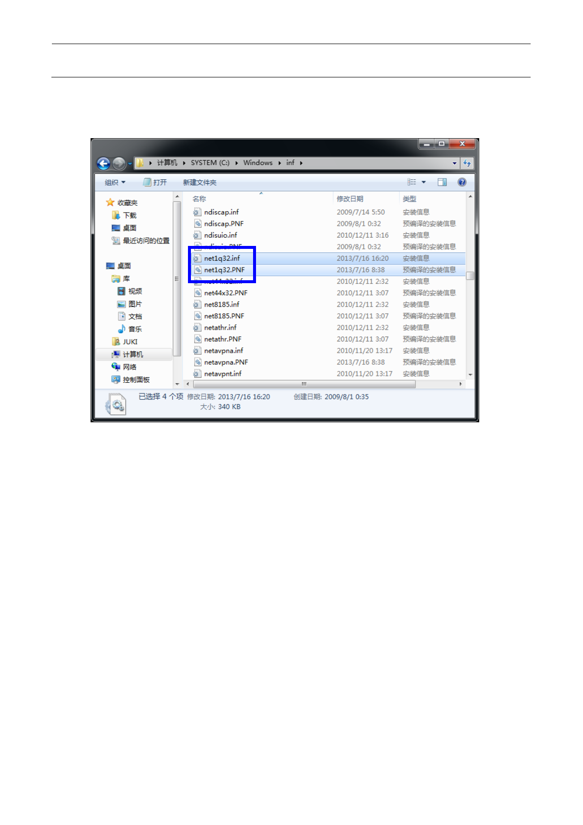 打开浏览器,打开“C:\Windows\inf”文件夹。