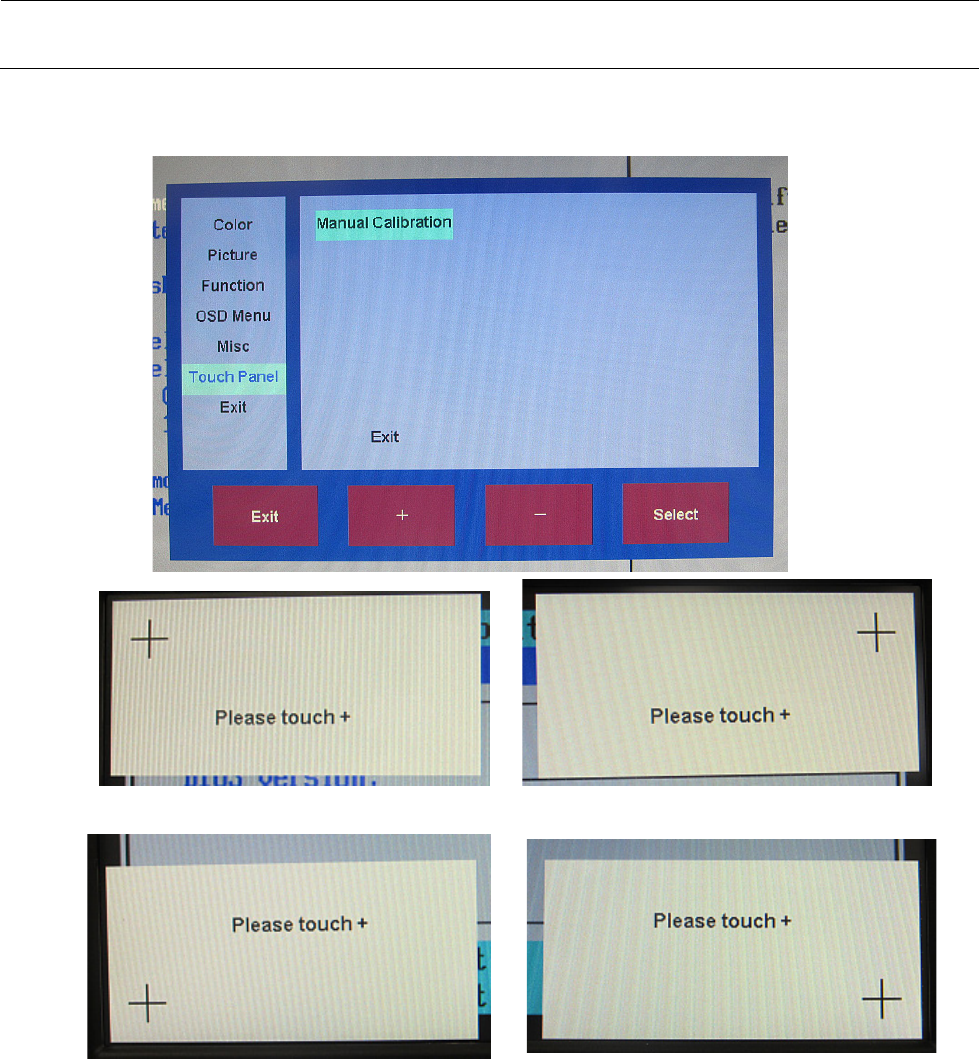 2) 操作 OSD 的“+”,“-”,使光标移动至“Touch Panel”。