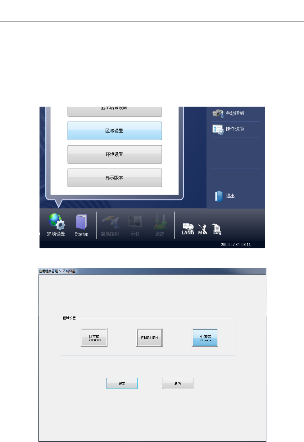 1) 在系统已启动的状态下,选择“环境设置”-“区域设置”。