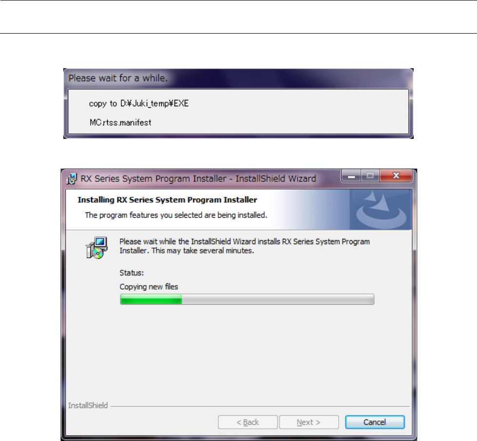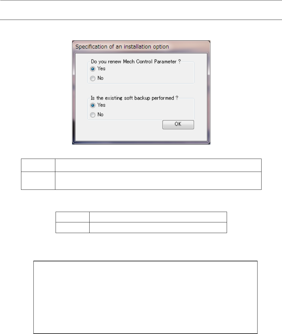 维修调整要领书 13 -39 8 ) 在 7 )的 “现有软件的 备份”的选 择中点击了“ Yes ”时,会显示正 在建立现有软件备份 的画面。 9 ) 安装中间,进行 状态以 进展条 显示。