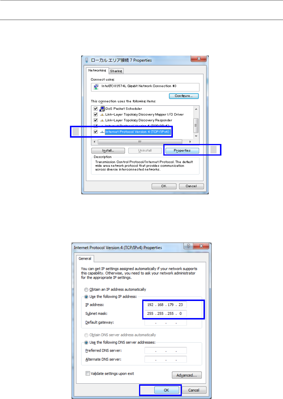 选择[Internet Protocol Version 4 (TCP/IPv4)],按下[Properties]按钮。