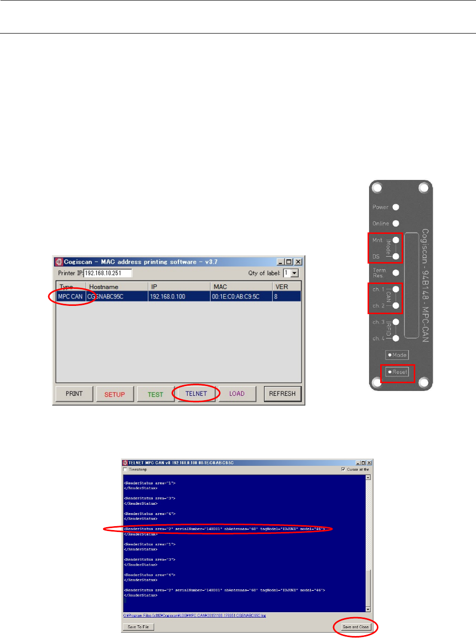 5. 从清单中选择「MPC-CAN」,按下「TELNET」。 此时,相同网络内所连接
