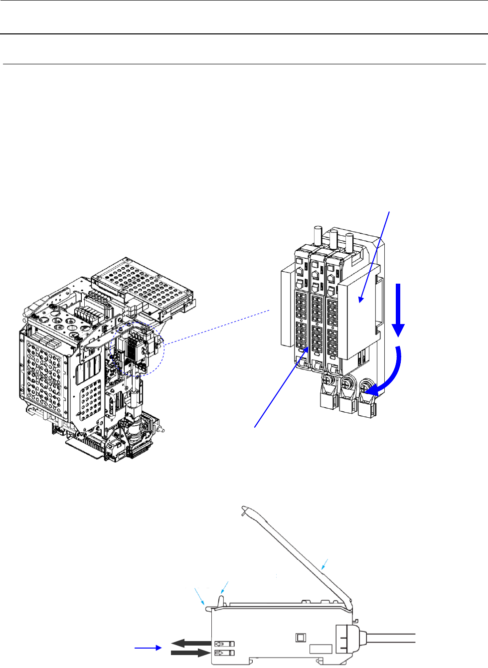 3) 拆下固定在 TM 电缆撑架上的θ电动机电缆以及连接贴装头提升气缸的φ4 空气管子(Y 联管节部)