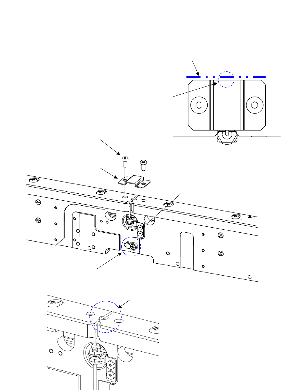 维修调整要领书 17 - 26 <第 1 轨道 /第 3 轨道> 在下降夹紧 板的状 态下 传感器 前端要位于 长孔内 夹紧板 固定底座 埋头螺钉 M3X0.5 L= 8 ( SM1030801SC ) 极低头螺栓 M3 L=5 ( EZ328248101 ) 要有空隙