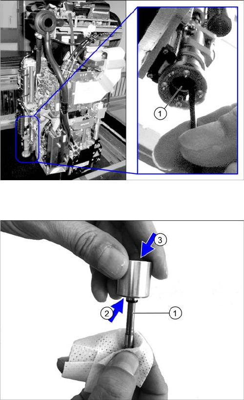 ► 使用一块 SIPLACE 清洁布清洁顶针表面和顶针凹槽