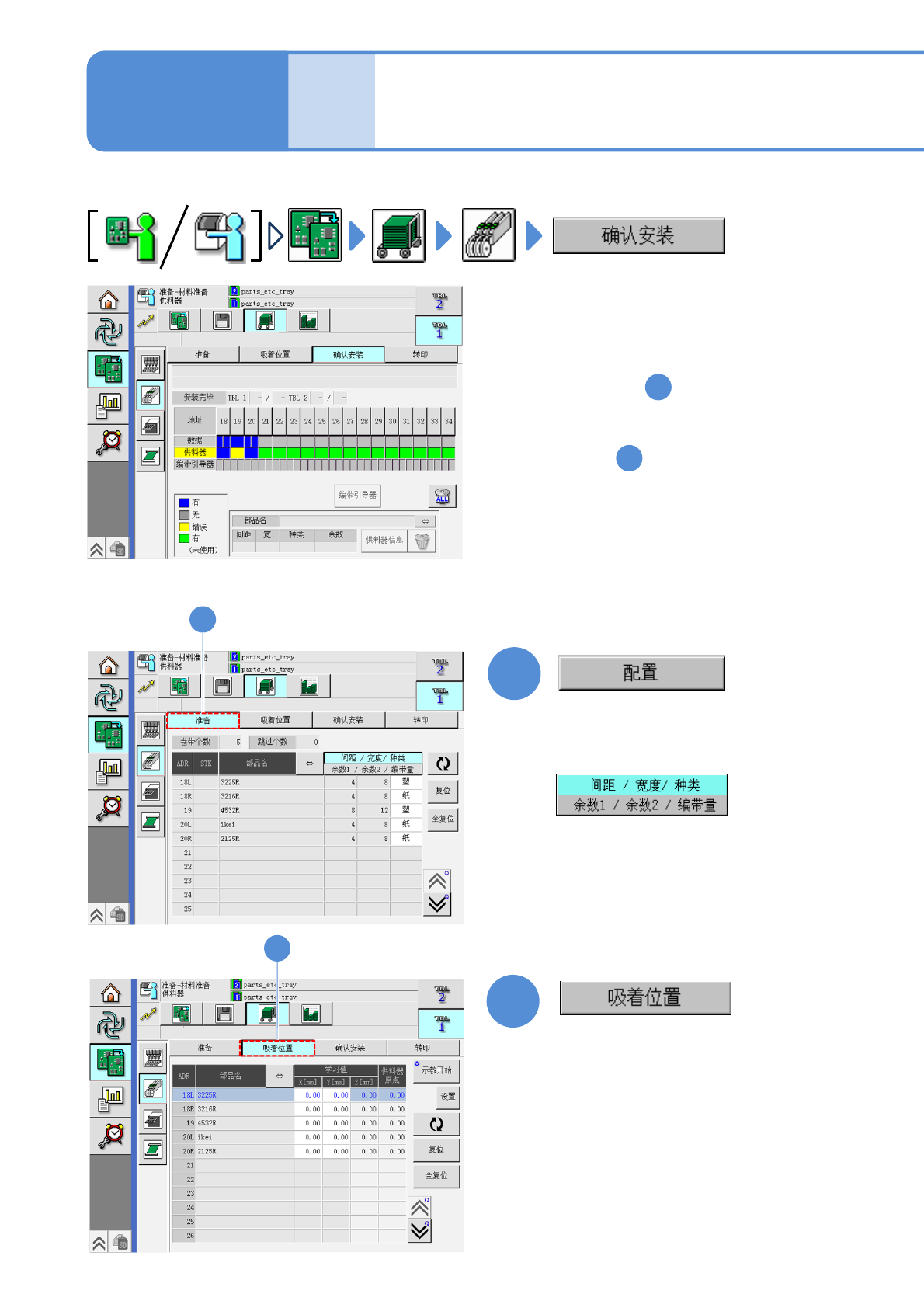 确认数据和供料器工作台上安装的生产材料是否一致。