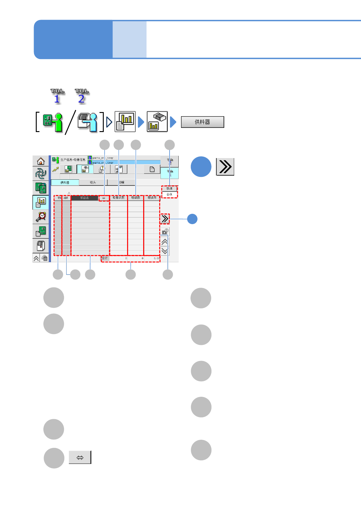 各供料器的错误次数合计或者错误率。