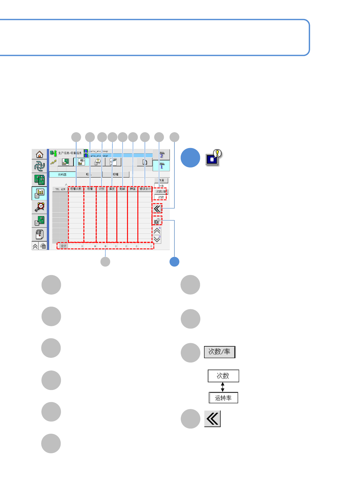 所有供料器的吸着次数和错误次数的合计,