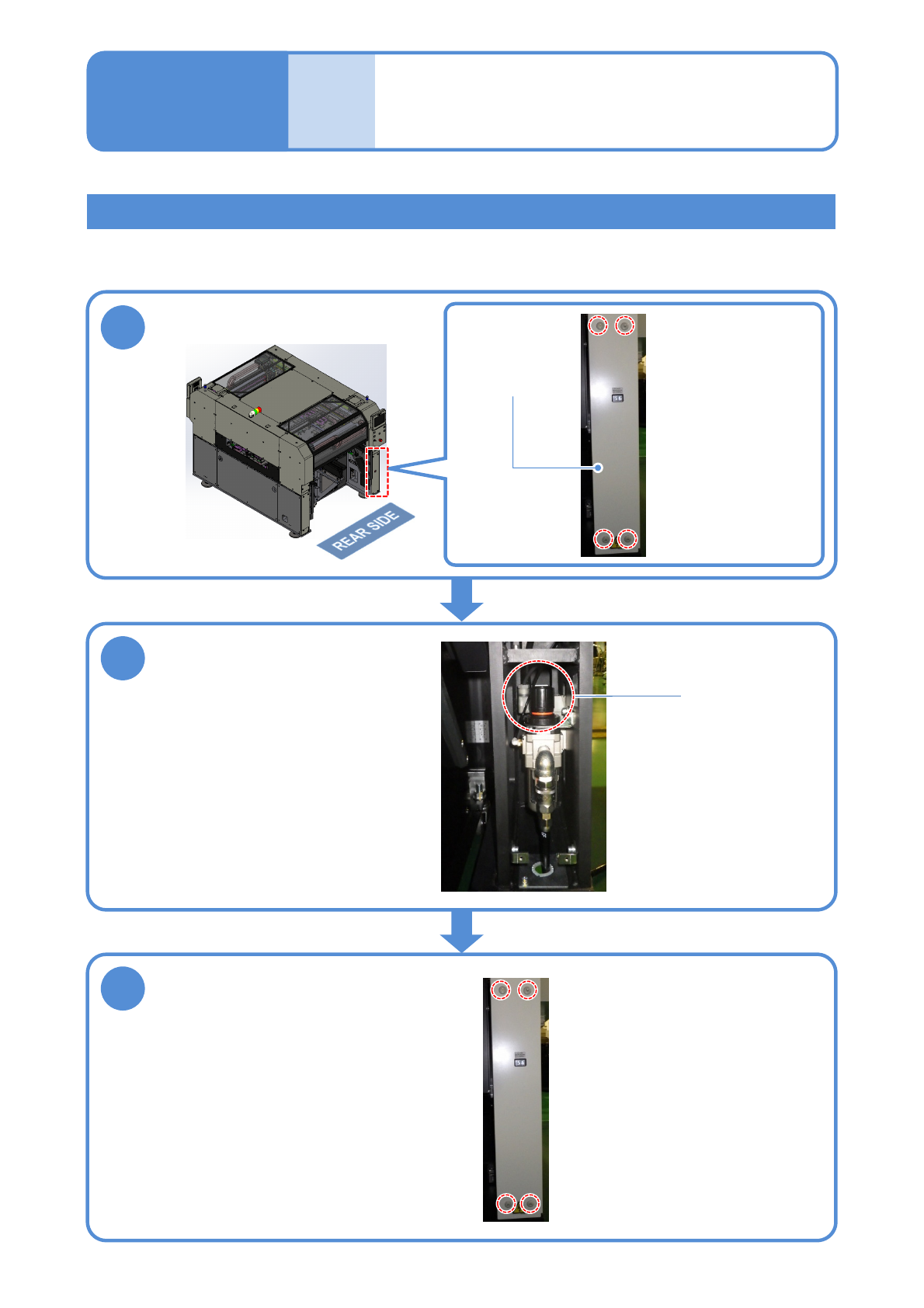 NPM-W X/WXS EJM9DC-MB-06O-0 0 6-1-1 -3 调整气压 ( 主气压 ) 1 2 3 工作 开始前 压力的检查 2 操作手册 6-1-1 使用工具 : 六角扳手 (3 mm) 所需时间 : 3 分钟 ●主气压在规定值以外时,请调整。 拧松螺栓,卸下后侧压力表的保 护盖 ●卸下螺栓 ●螺栓 : 4 个 后侧压力表 保护盖 调整到规定值范围内 主气压用 调节器旋钮 ●调节器旋钮的操作方法 1: 向上拉起旋钮。 …