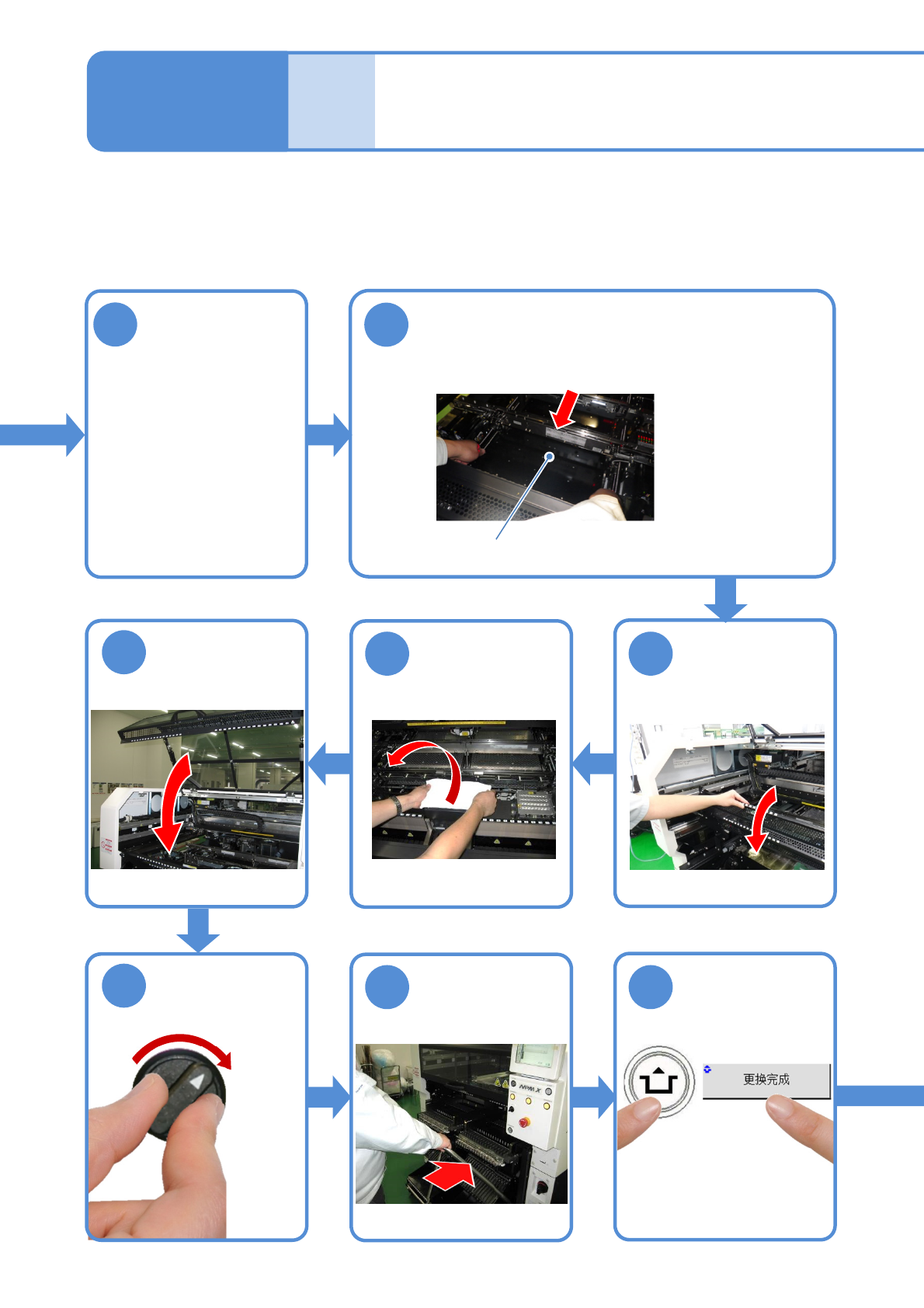 NPM-W X/WXS EJM9DC-MB-07O-0 0 7-3 -4 17 ACTIVATION 注意 ●清扫基板支撑块时,请同时确认支撑销的状态。 ( 如果 支撑销尖端部留有助焊剂时,请使 用棉纱布擦 拭。 ) 注意 ●对支撑销 ( 自动更换用 ) 请勿施加落下等强烈压力。 可能会变形。另外,请勿使用发生变 形的支撑销。 ●请注意不要让支撑销自动更换用的 支撑销的吸引孔发生堵塞。 吸引孔 确认提示 ( 确认基板支撑块下降到原点 )
