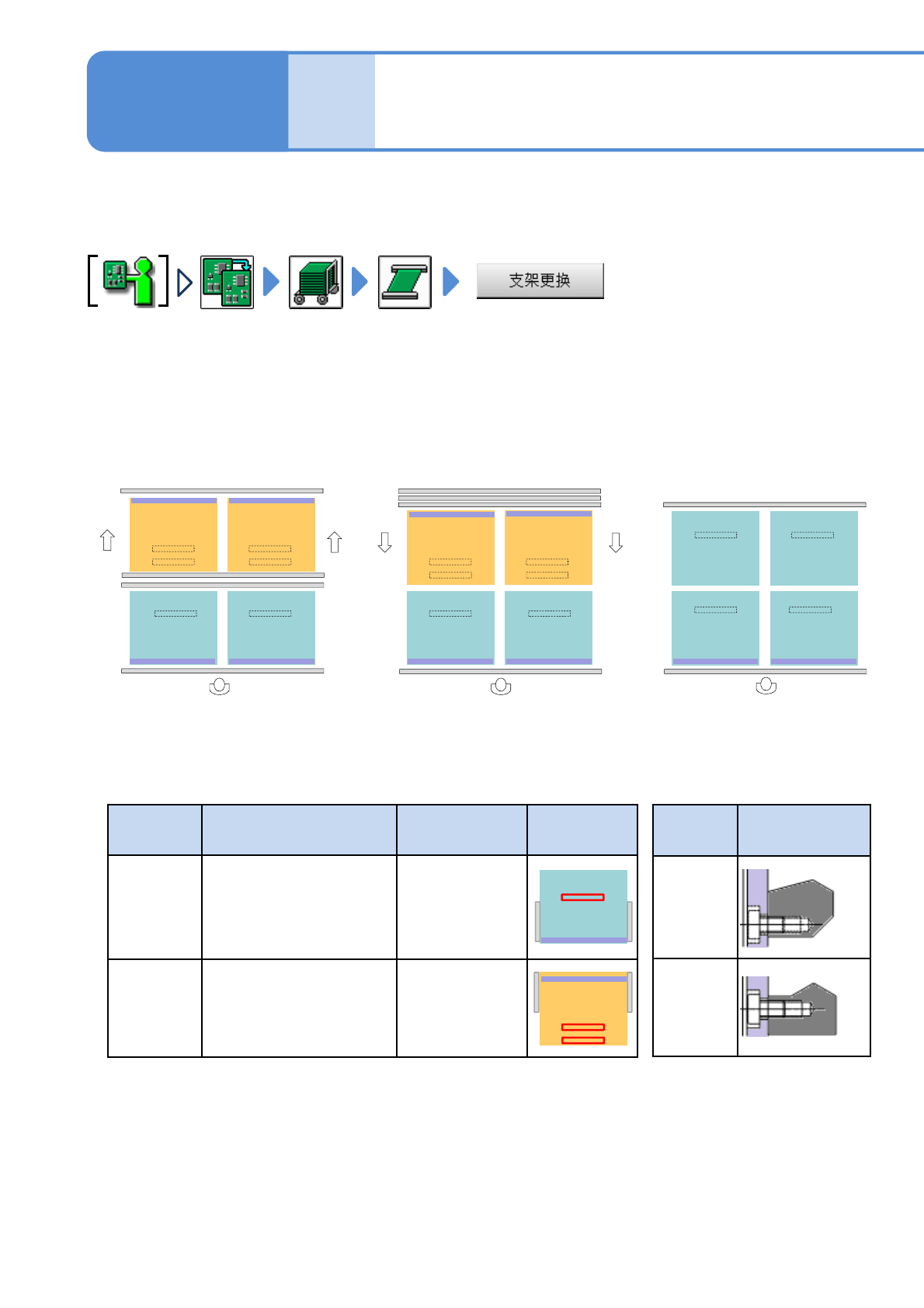 ●双轨传送带和单轨传送带的Rear (后) 侧的基板支撑块是不同的。