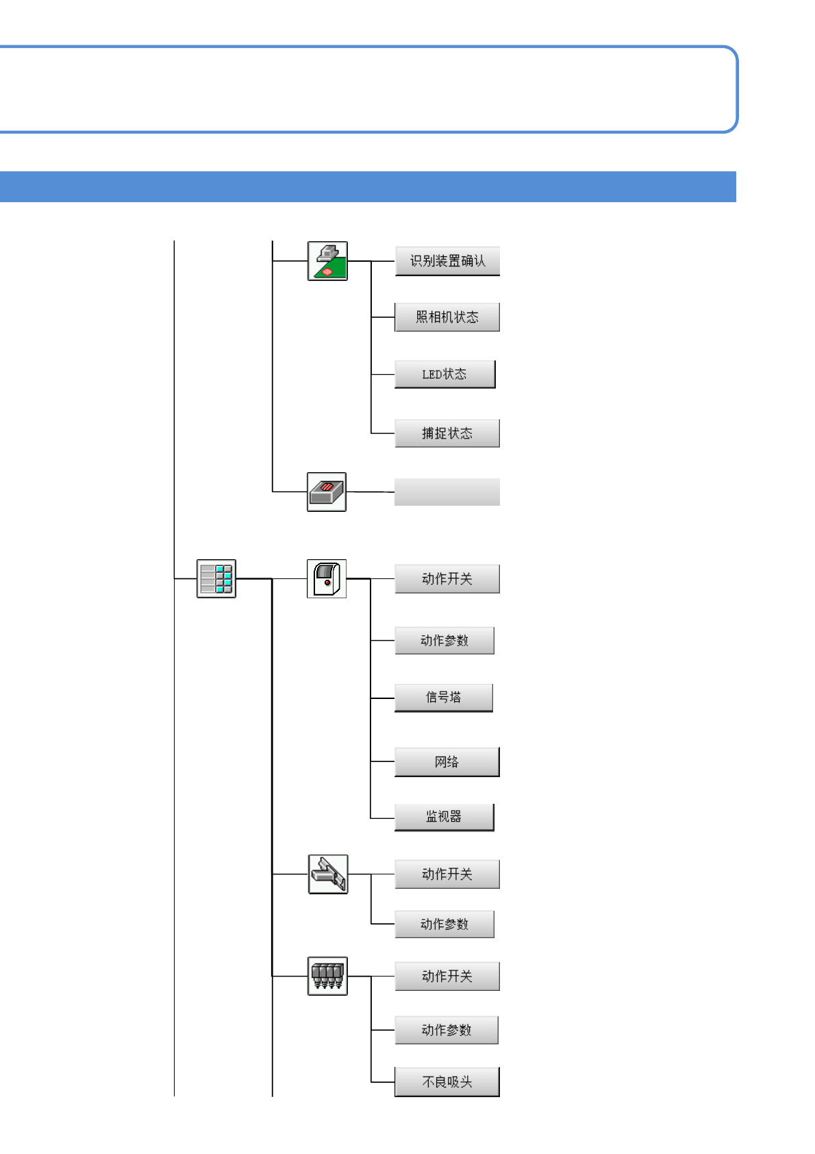 EJM9DC-MB-02C-0 0 NPM-W X/WXS 2-2-2 -9 各部位 名称 菜单构成 5 2-2-2 传送带 设定传送带的选项功能。 设定参数。 供料器 设定传送带的选项功能。 贴装头照相机 ★设定参数。 ★设定传送带的选项功能。 ★高度 传感器 多功能识别 照相机 设定传送带的选项功能。 确认数据确认的结果。 全体 参数 ★设定传送带的选项功能。 设定参数。 ★带有标记的图标或按钮,是在搭载 了该选购件时才显示。 设定…