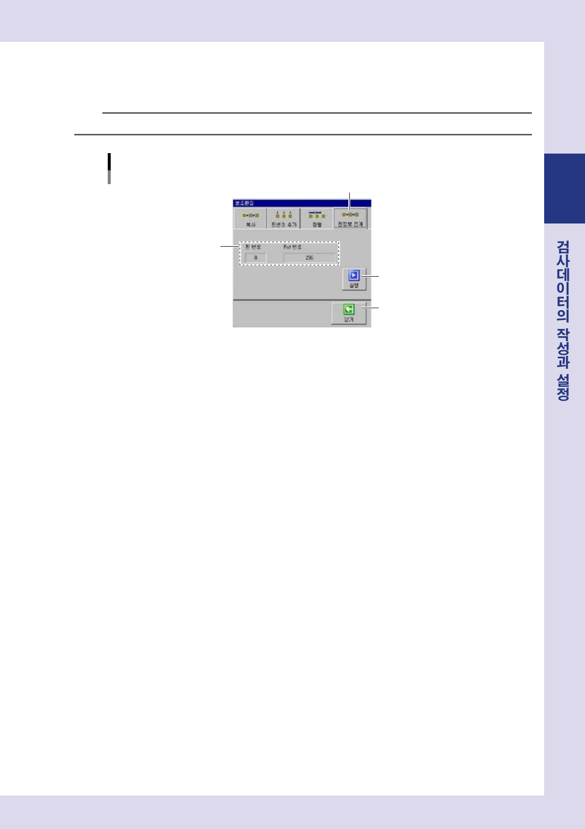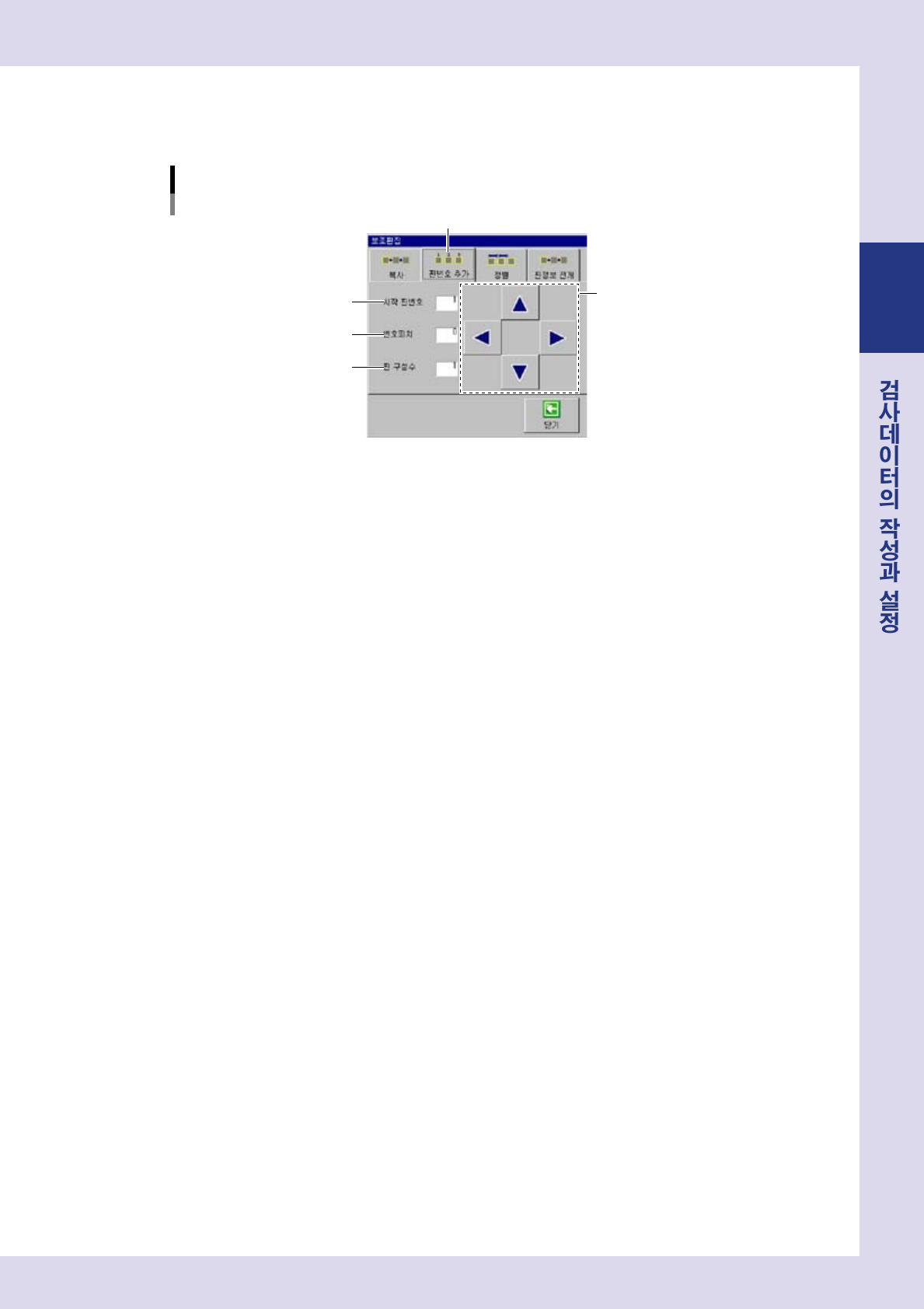 [ 검사데이터 ]-「스탭」화면에서정렬시킬스탭을선택합니다 .