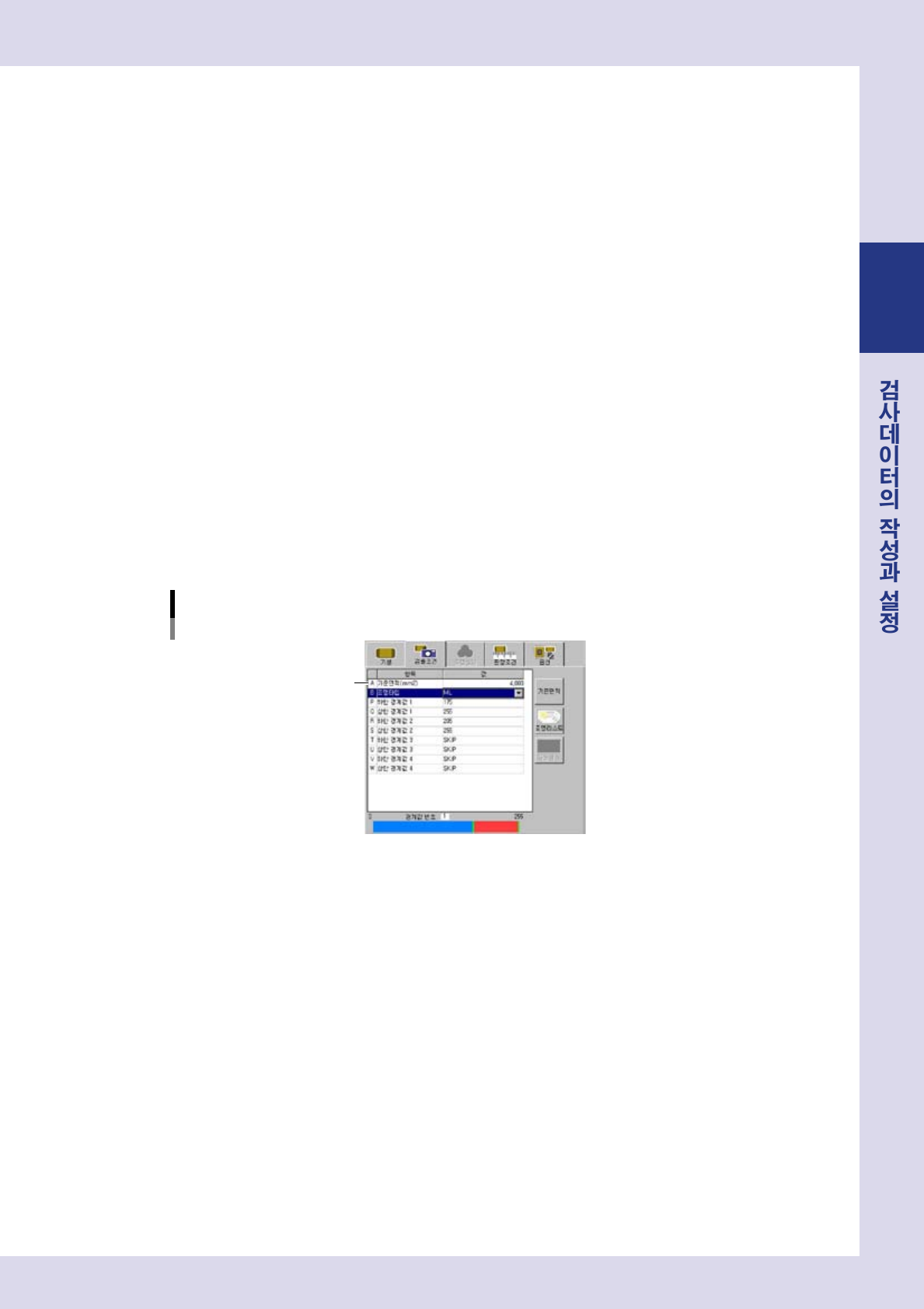 「검출조건」탭화면을열어서 ,다음의파라미터를설정해주십시오 .