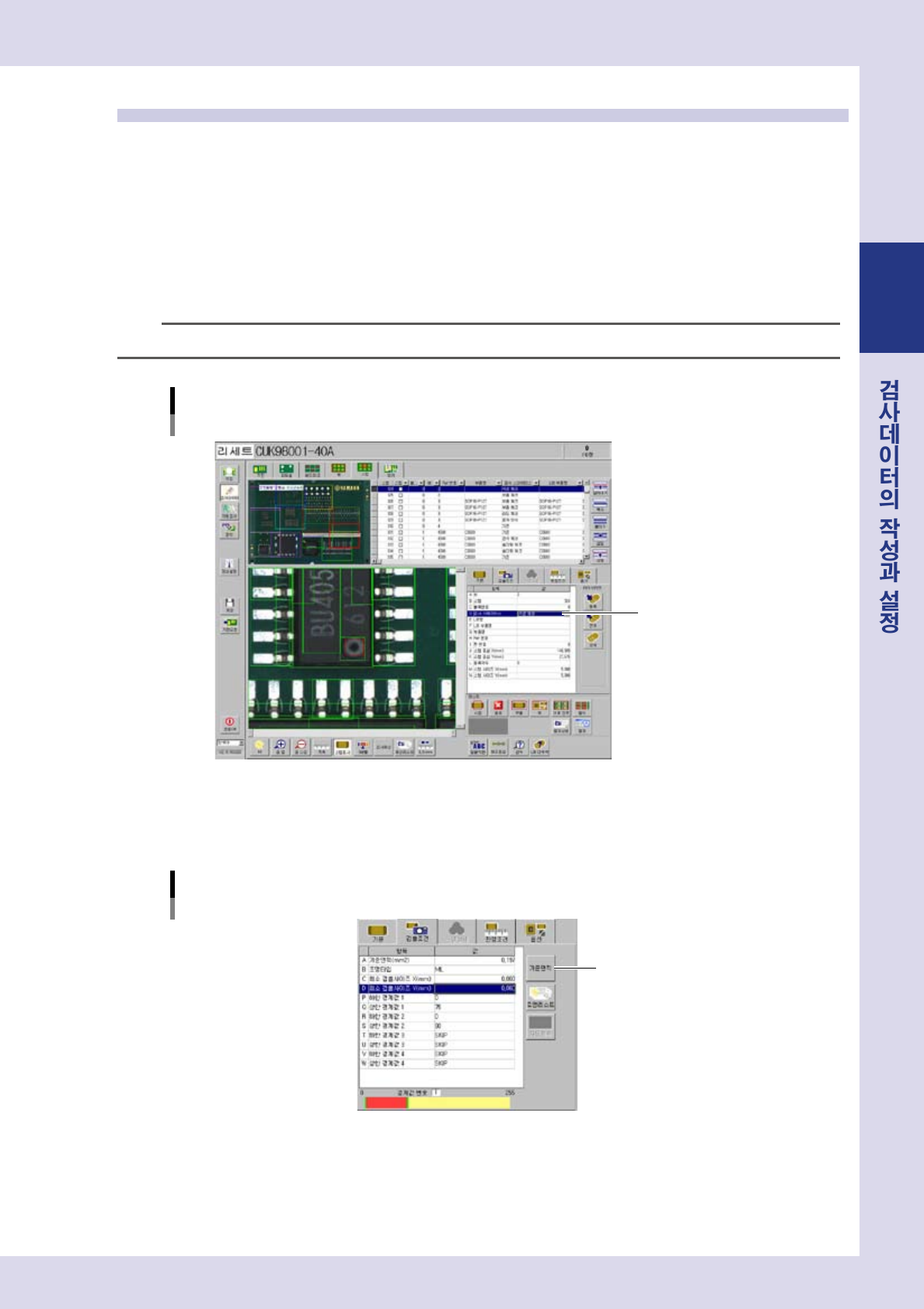 「검출조건」탭화면을열어서 ,다음의파라미터를설정해주십시오 .