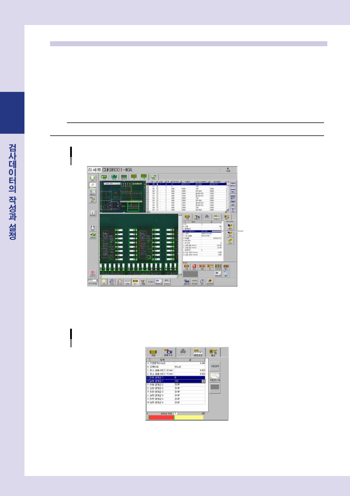 검사조건 파라미터를 설정합니다 .