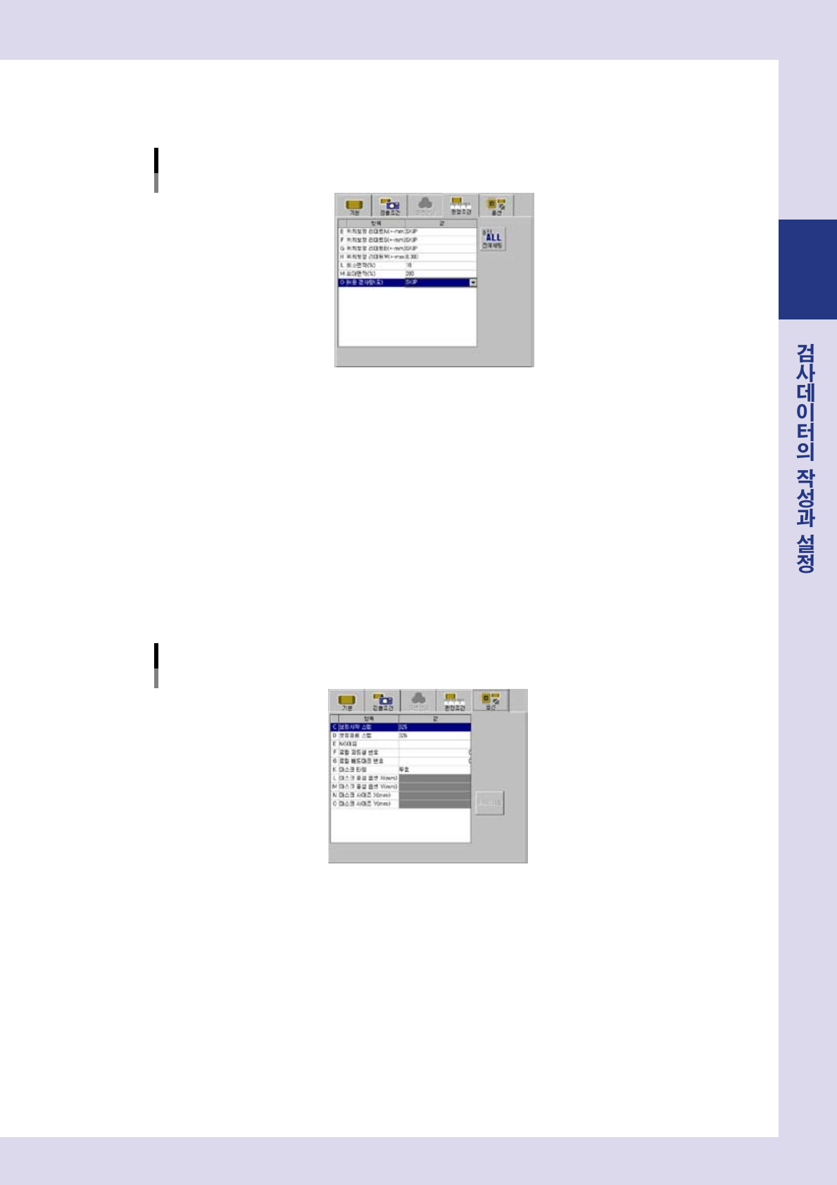 「검사조건」파라미터화면을열어서 ,다음의파라미터를설정해주십시오 .