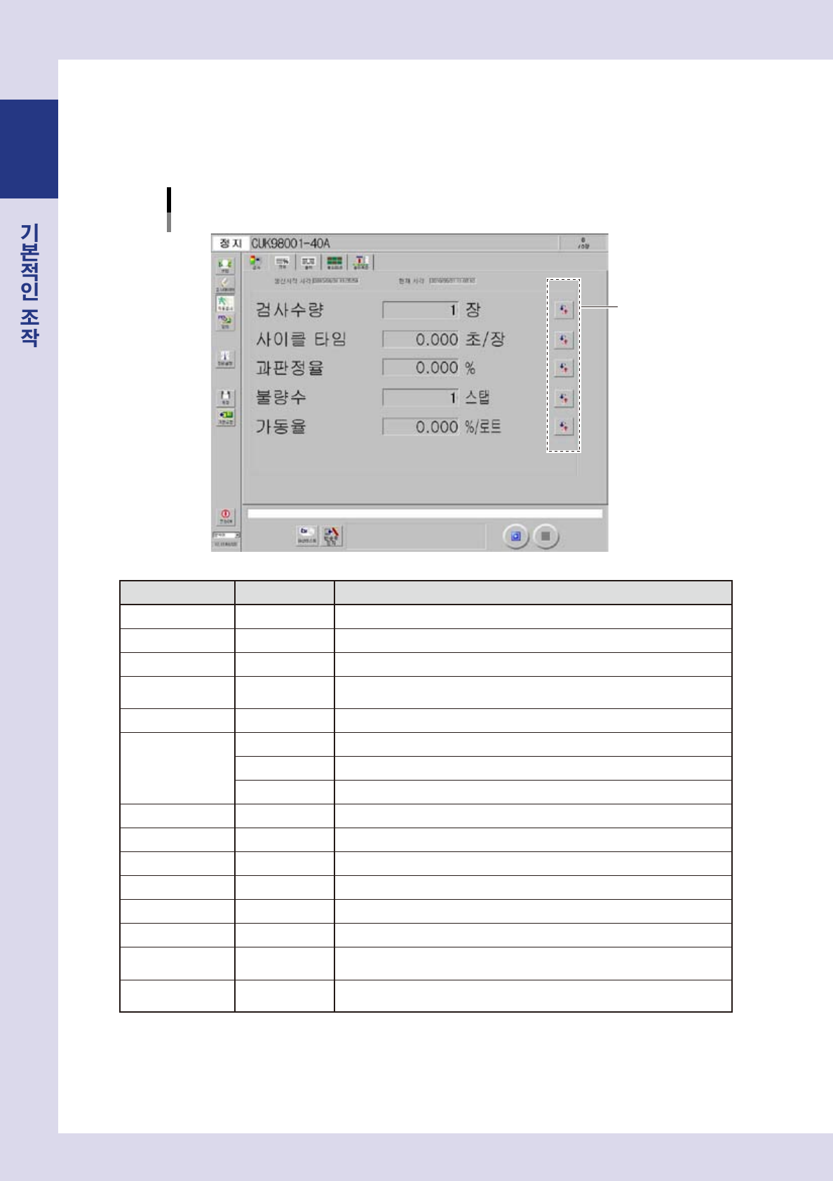 여기에서는 , 자동검사 화면에 대해서 설명합니다 .