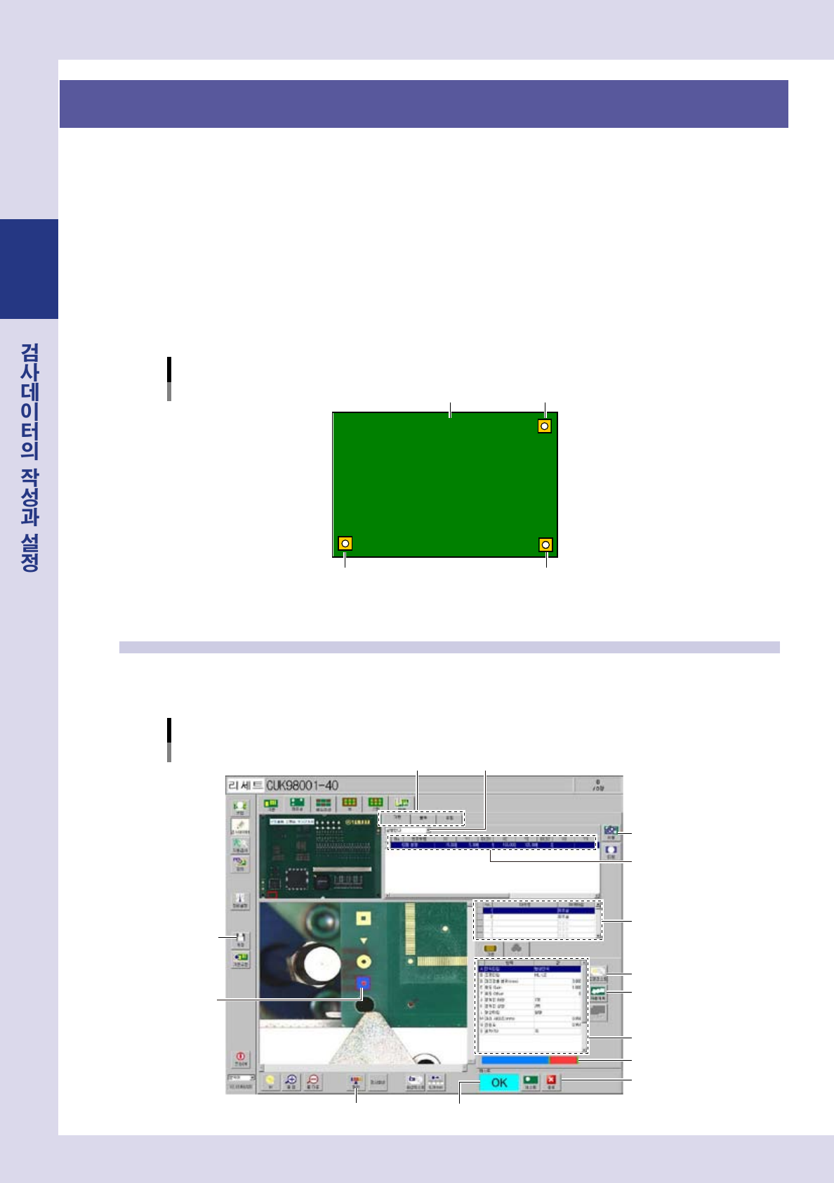2-13 2 3. 기 판 전 체화 상의 저장 검 사데 이터 를신 규 로작성 했 을경 우에 는 ,기판전 체 화상 을저 장할필 요가있 습니 다 . 기 판전 체 화 상의저 장 은 ,기판을장비내 로반 입 ,고정 시 킨후에실 행 합니 다 . 1 [ 검 사데이터 ] - 「기판 」 화 면을 표 시합니다 . [검사데이터] -「기판」화면 Step 7 Step 5 Step 6 …